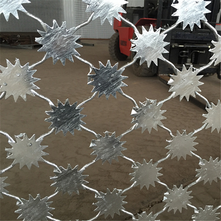 6、蛇腹型刀刺網由銳利尖角刀片和芯線組成,刀刺、刀型整齊、刀片銳利、排列均勻致密、連接牢固。