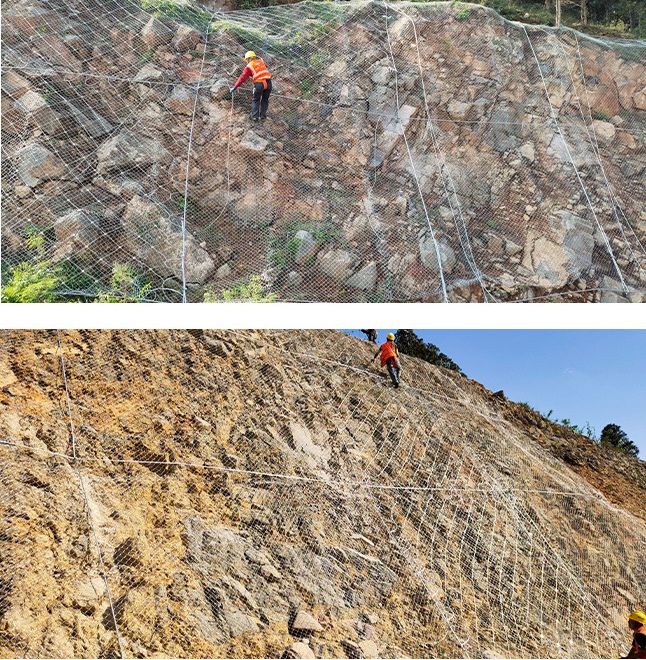 它是一種十分新穎的徹底改變傳統的邊坡防護觀念的新技能商品,能夠將I程對環境的影響降到最低點,其防護區域內能夠充沛的保持土地、巖石的穩定,經過人工施行植草、栽樹的美化效果,因而現在邊坡防護網在護坡工程中起到了不可或缺的作用。