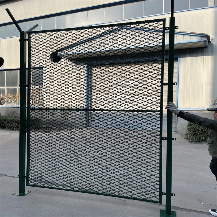 防攀爬圍欄網是一種防護、隔離能力非常強的防護網產品。隔離網的網孔一般均為7.5*15cm ,5cm*10cm。5*15cm鋒利的片和適當的小孔形成了一道防攀爬高墻安全屏障。鋒利的型由雙線扣裝后成蛇腹狀,既美觀又讓人不寒而栗。起到了很好的阻嚇作用。同時隔離網產品具有美觀、防阻效果好、施工便利等優點。隔離網用在放風場、巡邏道,用來加高圍墻,都比較適用。