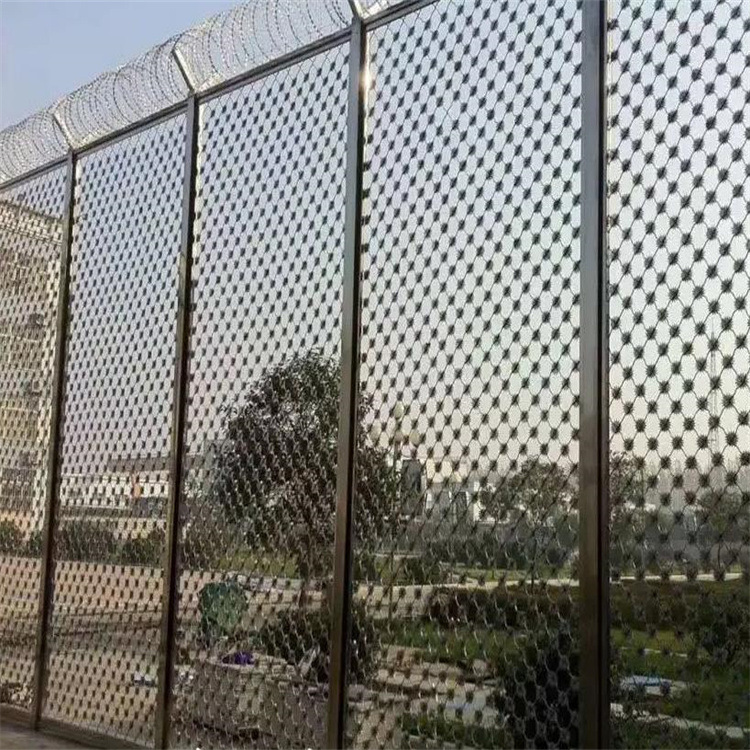 2、監獄警戒區隔離網墻設計要求整體連貫一致, 框網方正,對角線誤差不大于50px。隔離網網頁安裝離地距離5-200px,框網與立柱采用