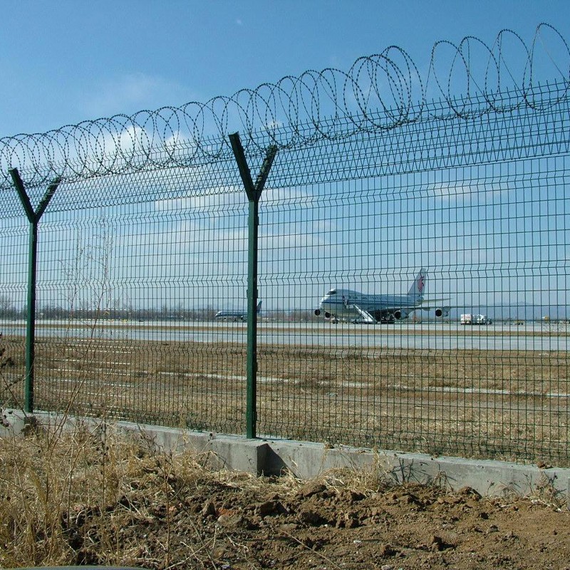 機場飛行區圍界網的組成多由Y型立柱+鋼筋焊接網片+蛇腹式刀刺網組合而成,大多數時候叫做機場鋼筋網圍界、機場鐵絲網圍界或者機場防護網,但是這類防護網不只是應用在機場。由于這種鋼筋網結構有很好的隔離和防攀爬功能,可以應用在很多地方,例如廠區、園林、軍事、邊防等等。安平縣艾瑞金屬絲網有限公司生產的機場圍界網,專注于高質量、安全性,隨著市場的不斷更新迭代,我們出品了多款機場鋼筋網圍界,滿足不同地域、不同級別、不同環境的需求。