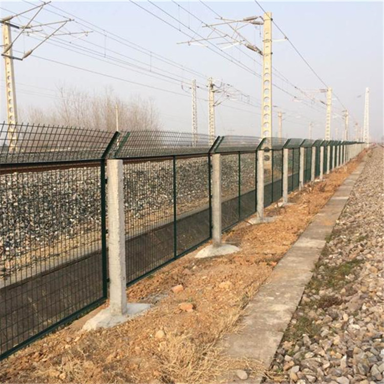 鐵路防護(hù)柵欄又叫鐵路隔離柵、鐵路防護(hù)網(wǎng),鐵路防護(hù)柵欄是金屬網(wǎng)片防護(hù)柵欄的樣式之一,鐵路橋下防護(hù)柵欄是指高鐵橋下的隔離防護(hù)柵欄。主要作用橋墩安全,防止行人、車輛穿越,保障橋墩安全的作用,防護(hù)柵欄的結(jié)構(gòu)是由金屬網(wǎng)片、鋼筋混凝土立柱組成。