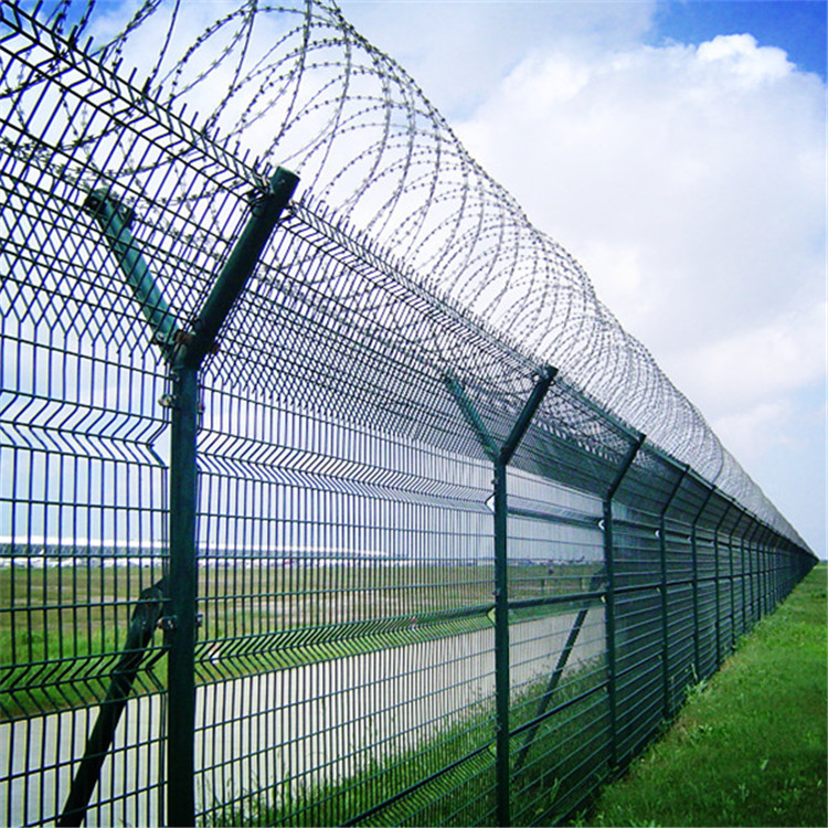機場圍界也被稱為機場圍欄、Y型安全網,由Y型支架支撐,是加固的焊接鋼板網,帶有Y形加勁肋的鋼板可以提高防護網的抗沖擊性,由熱浸鍍鋅制成的葉片繩網結構是一種優質的柵欄產品,具有很高的強度和安全保護性。