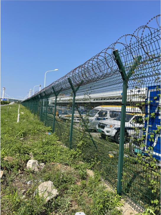 民用機場圍界網(wǎng)工程采用鋼筋圍界網(wǎng),機場鋼筋網(wǎng)圍界采用優(yōu)質(zhì)低碳鋼材制作,表面進行浸塑處理不單單提高了防腐蝕能力,更是提高圍界網(wǎng)的美觀性能。